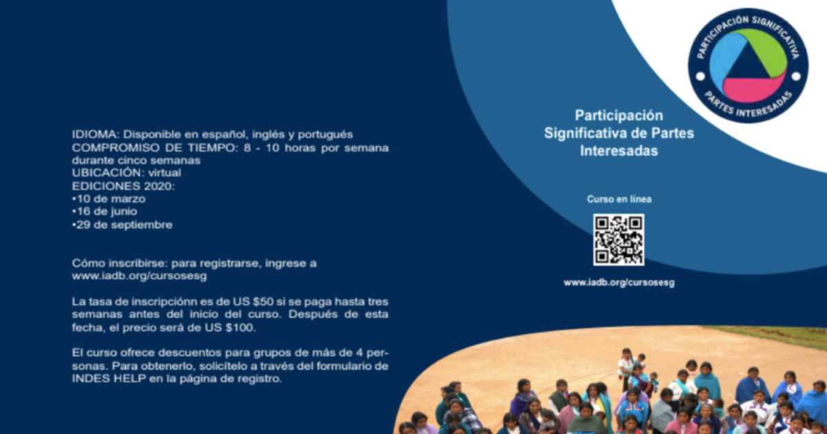 Este curso ofrece una visión general de los principios y el contenido que debe estar presente para que un proceso de consulta sea «significativo». Dado que no es factible discutir todas las posibilidades en detalle, el curso reflexiona sobre los principios aplicables y da una orientación general. El curso aborda tres aspectos de cómo se aborda la consulta en las políticas del BID y cómo ha evolucionado la buena práctica: