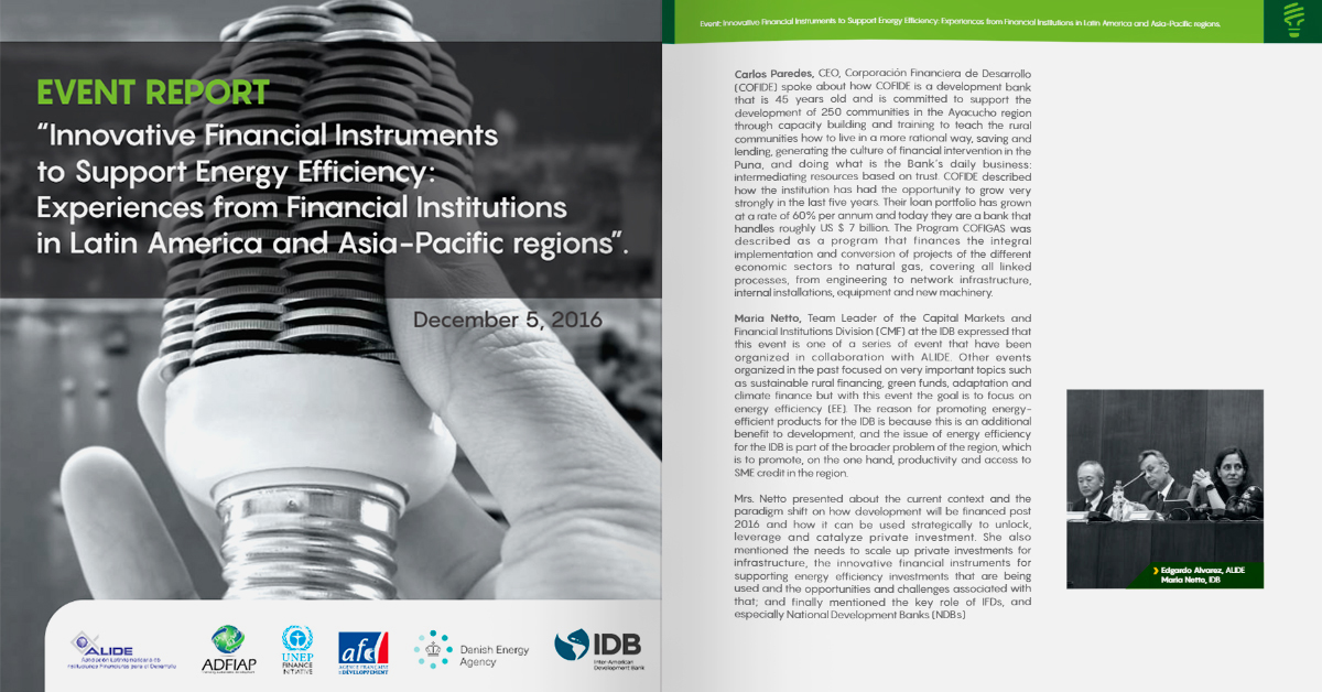 Informe del evento: «Instrumentos Financieros Innovadores para Apoyar la Eficiencia Energética: Experiencias de las Instituciones Financieras en las Regiones de América Latina y Asia-Pacífico» (2016)