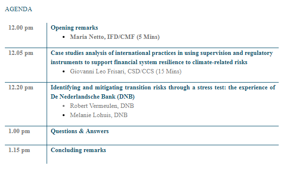 Nesse contexto, o De Nederlandsche Bank (DNB) trabalhou na implementação e no desenvolvimento de testes de estresse climático com o objetivo de abordar os riscos relacionados ao clima. O DNB recentemente conduziu um teste de estresse para riscos de transição, focado no impacto de uma transição energética de uma perspectiva macroeconômica e macroprudencial. Para o BBL de hoje, o DNB compartilhará os resultados do teste de estresse de riscos de transição.
