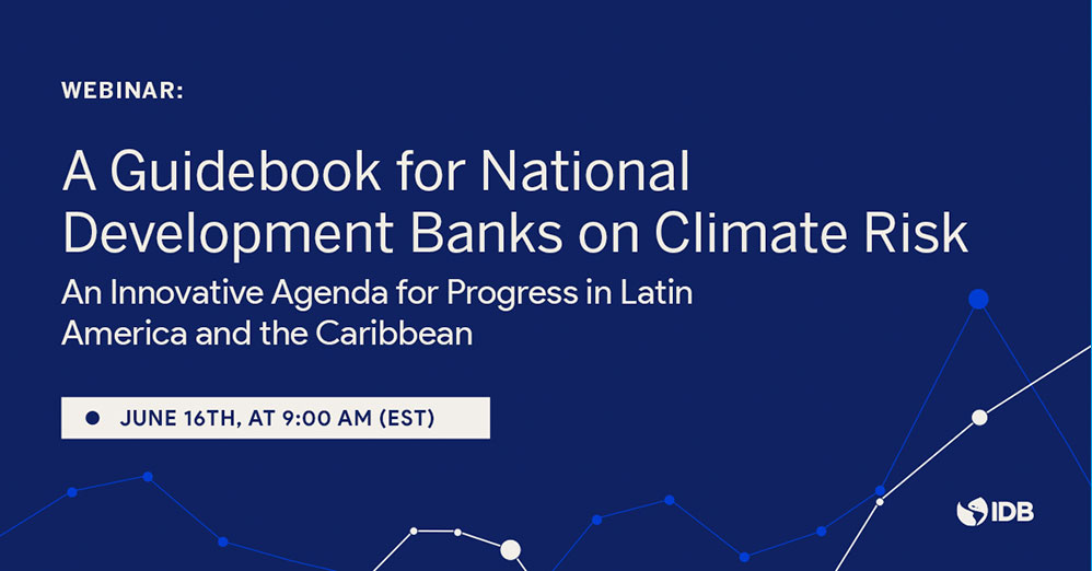 It is the launching event of an Inter-American Development Bank (IDB) new publication for National Development Banks (NDB) – “A Guidebook for National Development Banks on Climate Risk” – which provides them with a roadmap for the integration of climate-related risks and opportunities in alignment with the recommendations of the Financial Stability Board’s Task Force on Climate-related Financial Disclosures (TCFD).