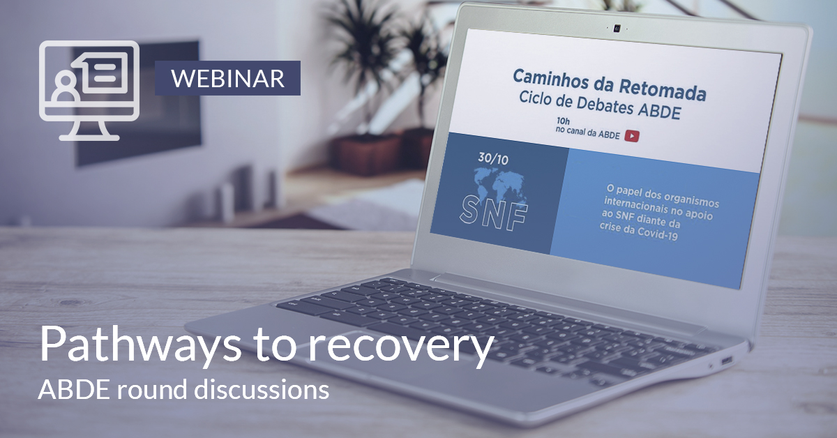 With “The role of international organisations supporting the National Development System (SNF) in the context of the Covid-19 crisis”, the debate will be attended by ABDE President Sergio Gusmão, the representative of the Inter-American Development Bank (IDB) in Brazil, Morgan Doyle, the director of the French Development Agency (AFD), Phillippe Orliange, the representative director of the Latin American Development Bank (CAF), Jaime Holguín, and the secretary of International Economic Affairs of the Ministry of Economy, Erivaldo Alfredo Gomes. The moderator will be the President of the Far South Regional Development Bank (BRDE) and Director of the ABDE, Luiz Noronha.