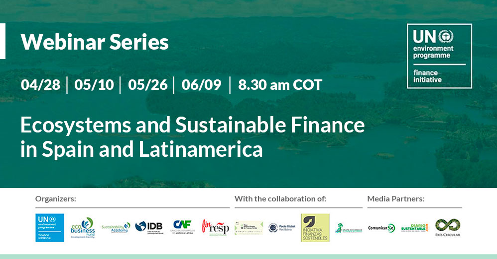 United Nations Environment Programme Finance Initiative (UNEP FI), eco.business Fund, Inter-American Development Bank (IDB), CAF – Latin American Development Bank, and FINRESP are organizing a Series of Webinars on “Ecosystems and Sustainable Finance in Spain and Latin America”.